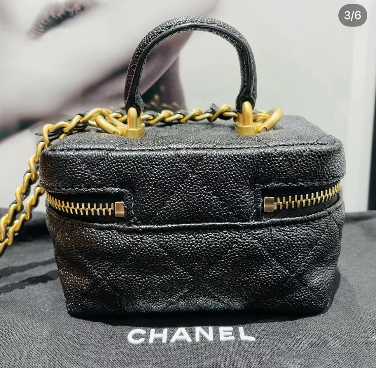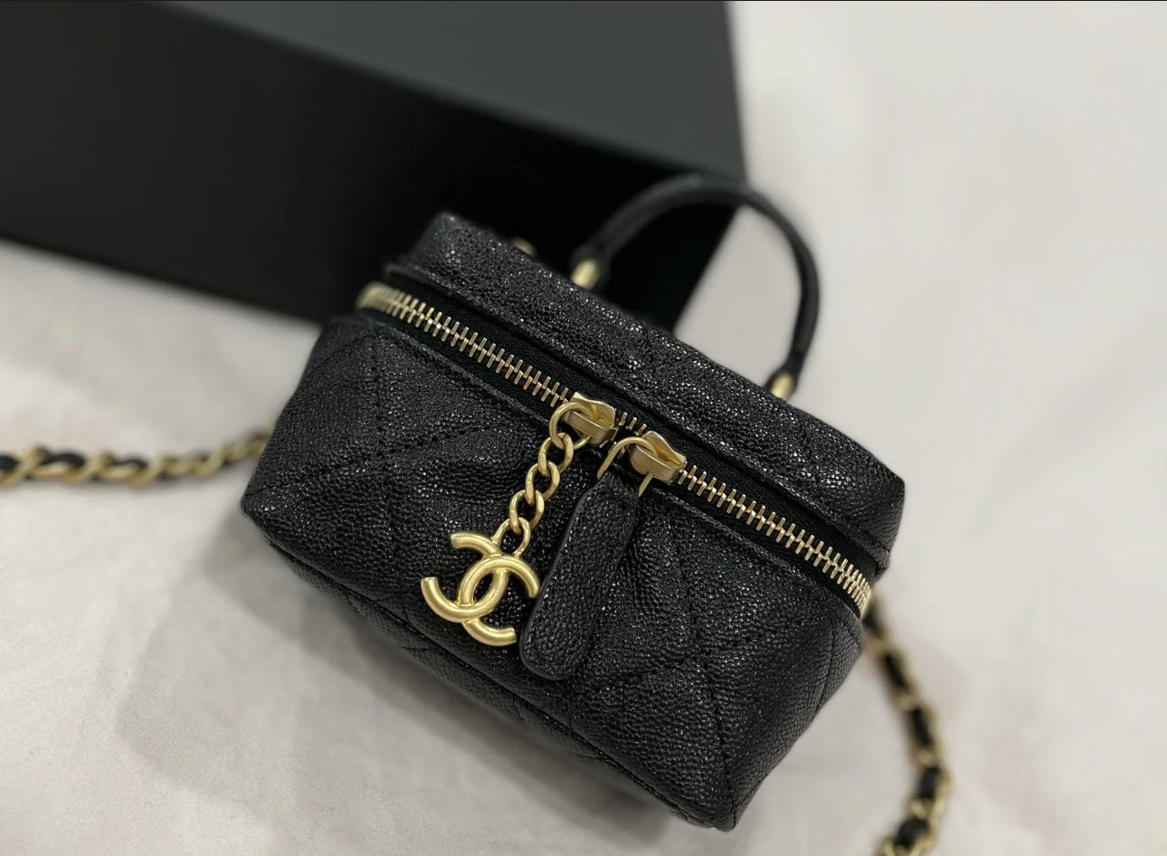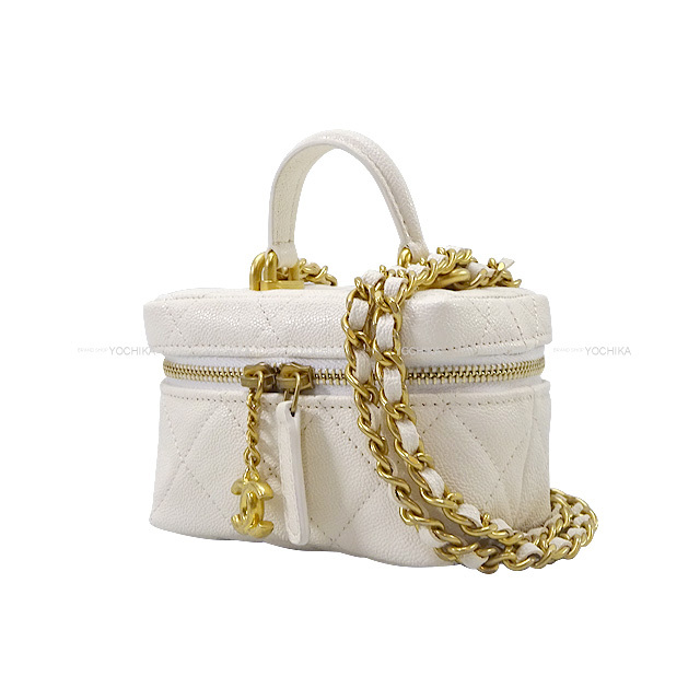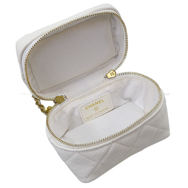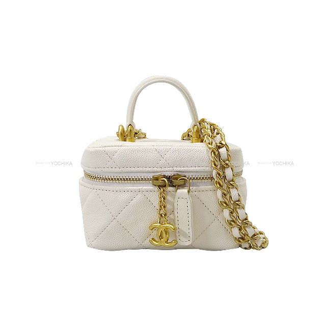 CHANELから小ぶりなサイズ感がかわいいバニティーバッグが入荷致しました!幅約10cmと大変小ぶりなバニティバッグ!流行中のミニサイズはあまり荷物を増やしたくない方にもおすすめです。ホワイトのボディとゴールド金具がカジュアルになりすぎず品よく見せてくれます!日常使いや特別な日など、どんなシーンでも大活躍間違いなしです。ご家族、恋人への誕生日プレゼントやご自身へのご褒美にもぴったり!是非この機会をお見逃しなく!