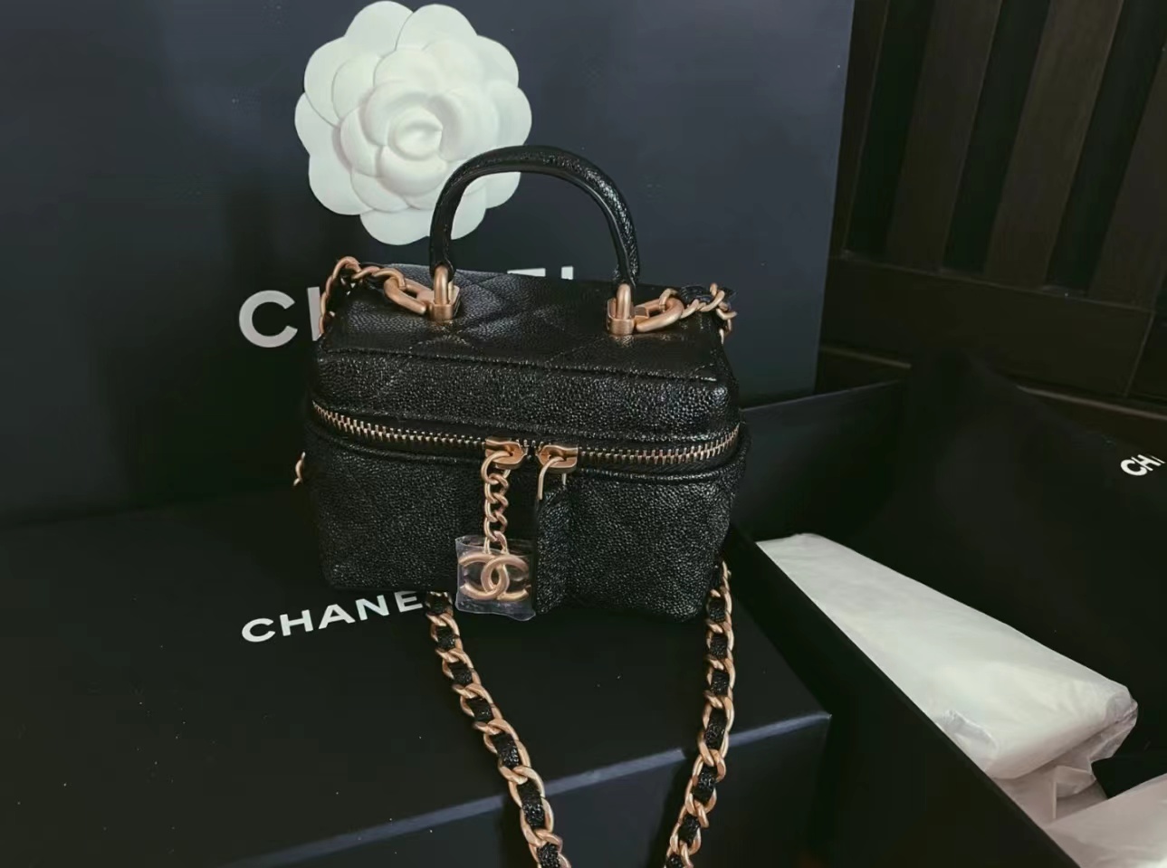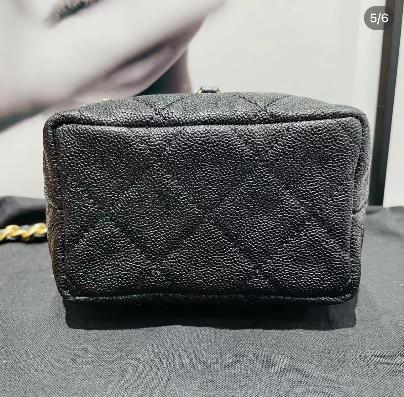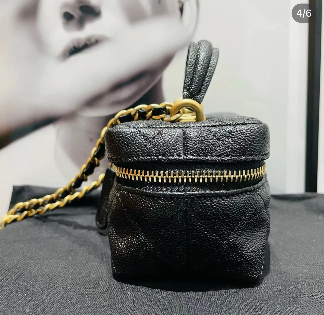 CHANELから小ぶりなサイズ感がかわいいバニティーバッグが入荷致しました!幅約10cmと大変小ぶりなバニティバッグ!流行中のミニサイズはあまり荷物を増やしたくない方にもおすすめです。ホワイトのボディとゴールド金具がカジュアルになりすぎず品よく見せてくれます!日常使いや特別な日など、どんなシーンでも大活躍間違いなしです。ご家族、恋人への誕生日プレゼントやご自身へのご褒美にもぴったり!是非この機会をお見逃しなく!
